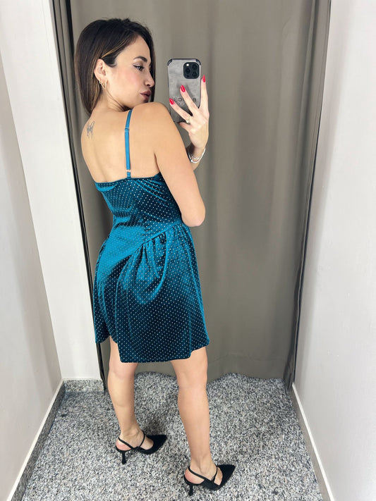 Vestito verde con fili di strass