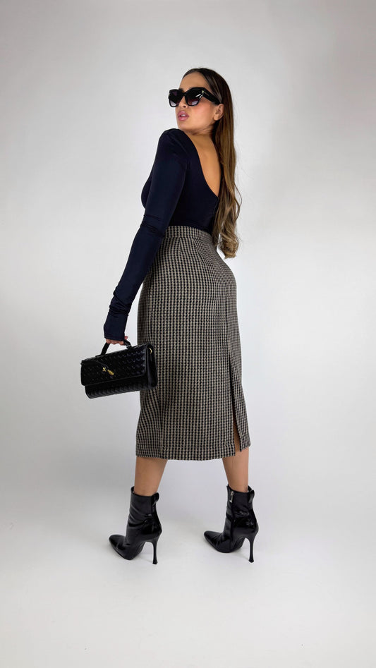 Gonna Pied de Poule Cammello