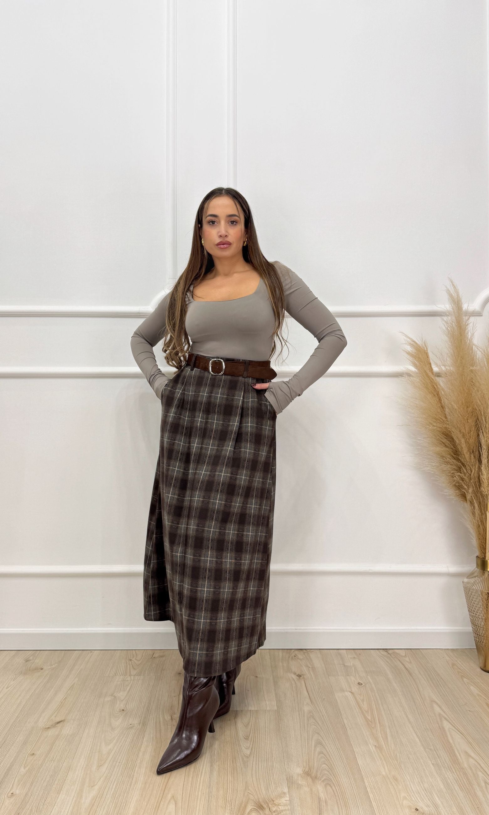 Body in lycra con scollo tondo ampio, maniche lunghe.