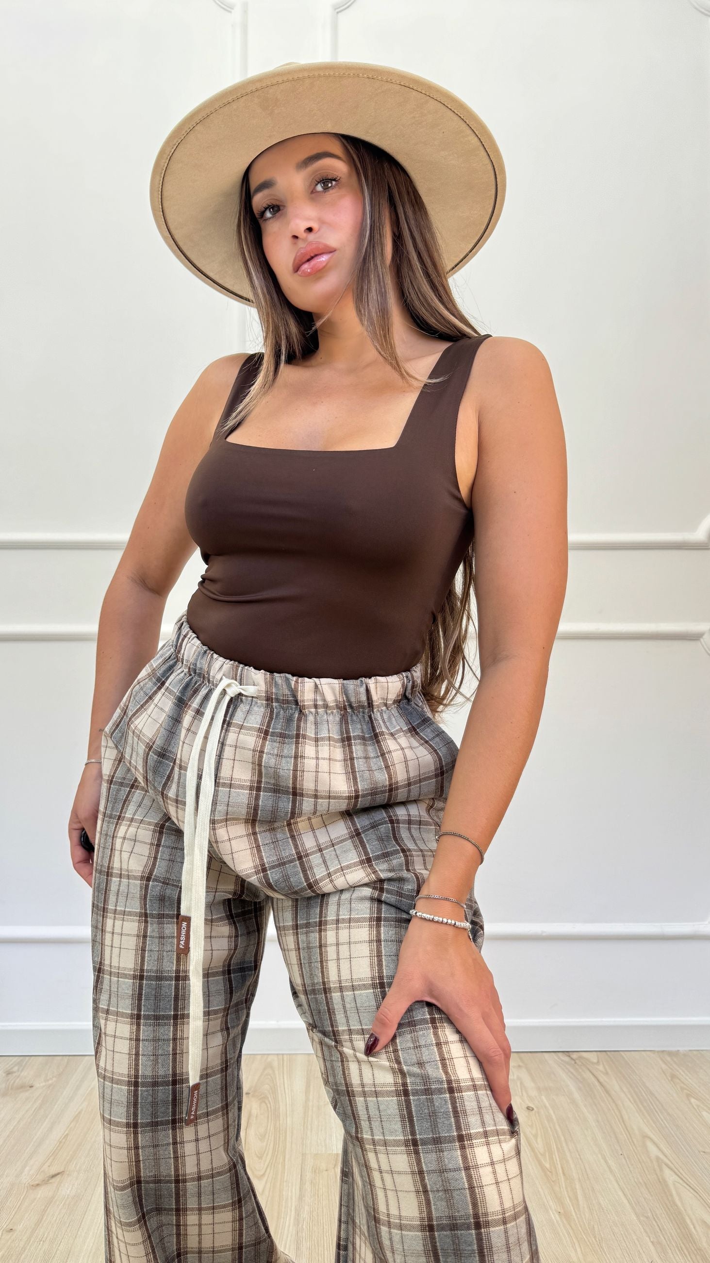 Canotta in Lycra aderenti, spalline larghe, scollo quadrato.