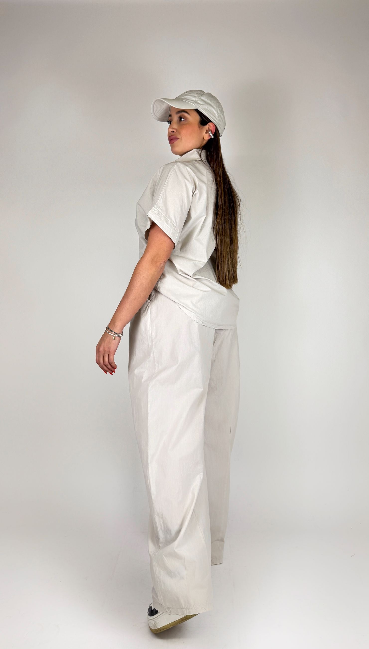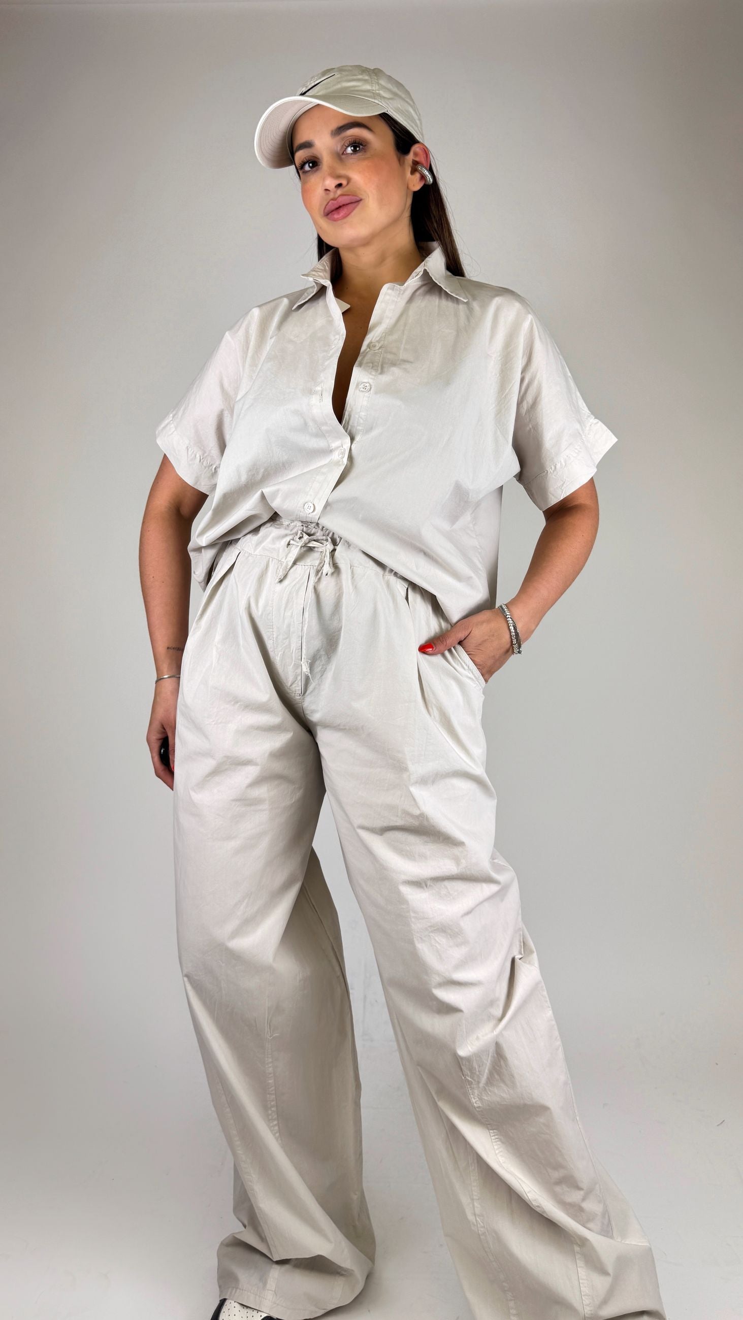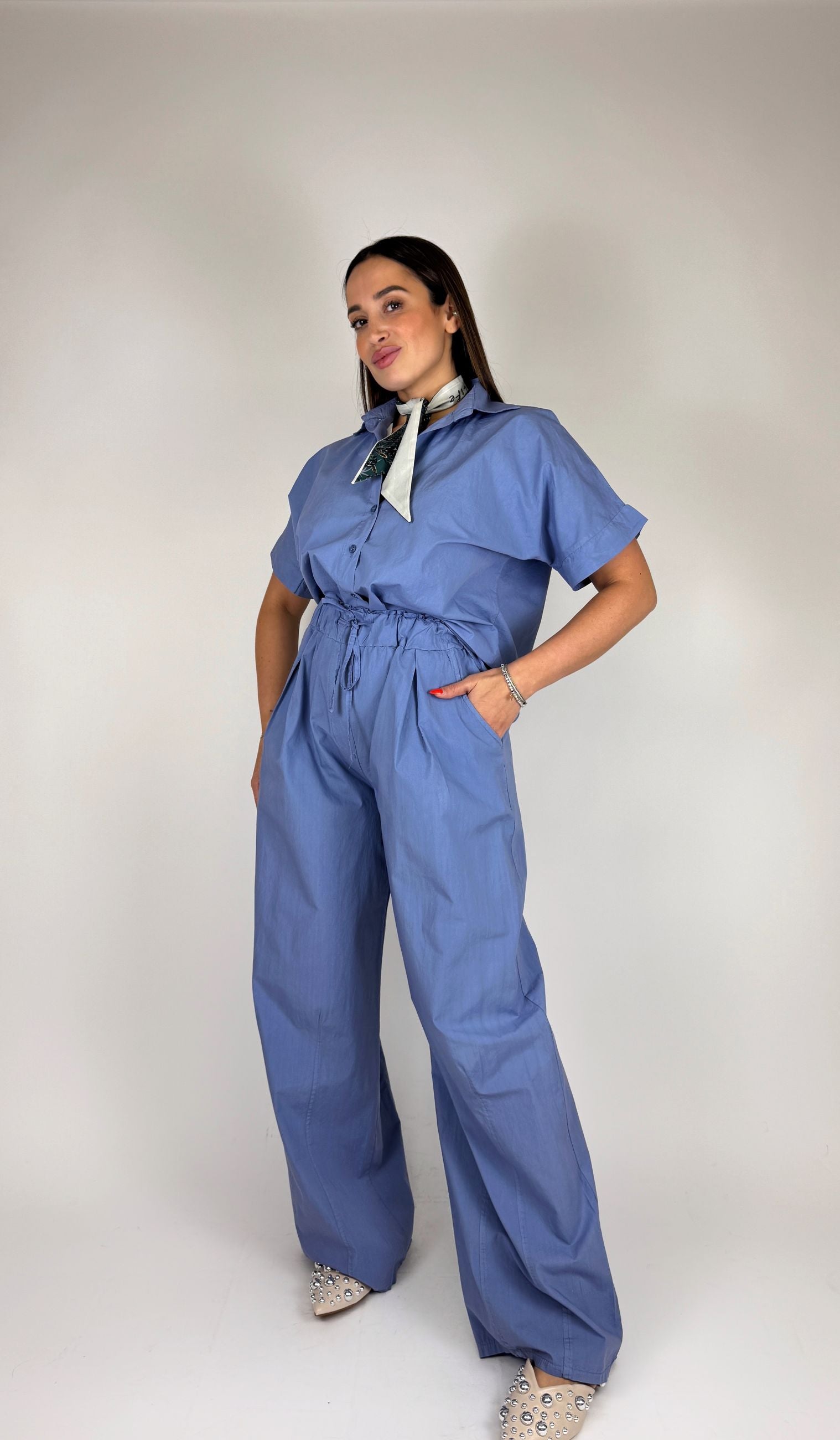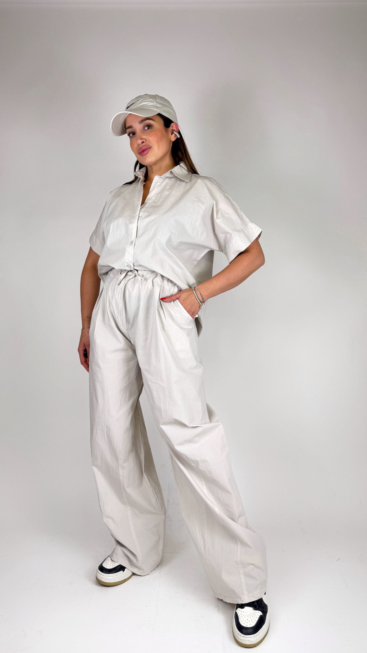 Pantalone ampio, palazzo con coulisse ed elastico in vita, tasche laterali