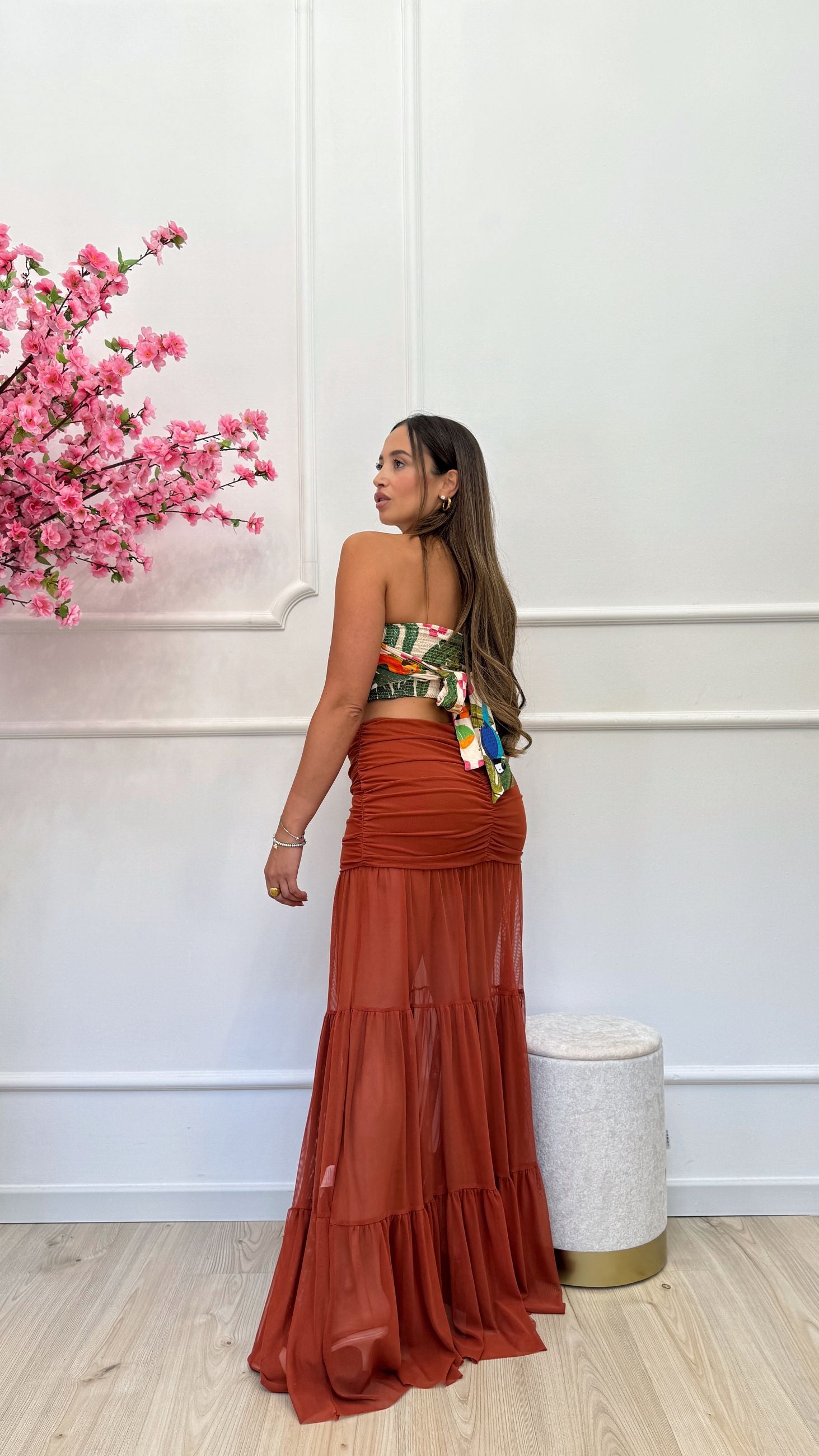 Gonna realizzata in tessuto tulle con fodera interna.