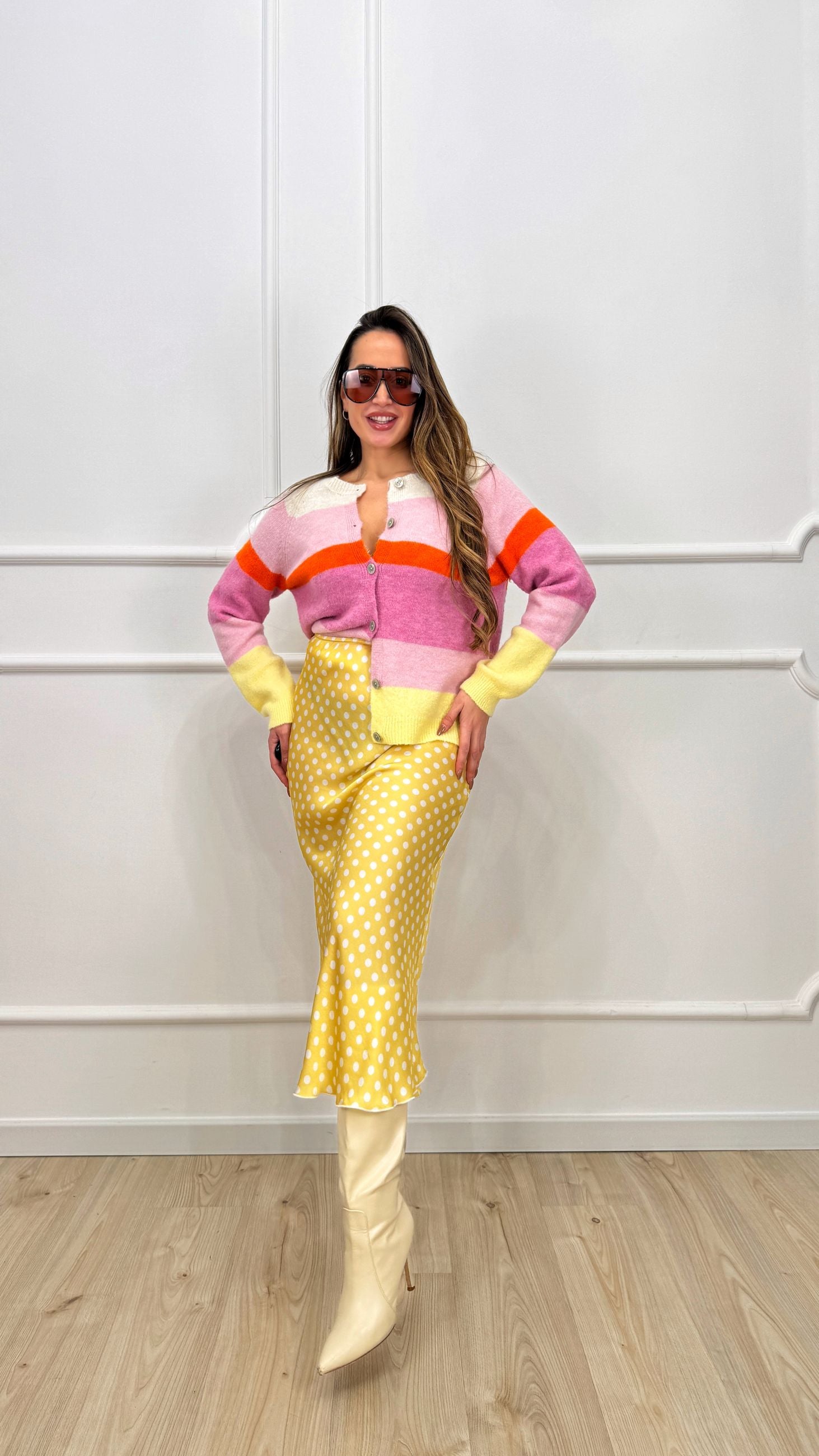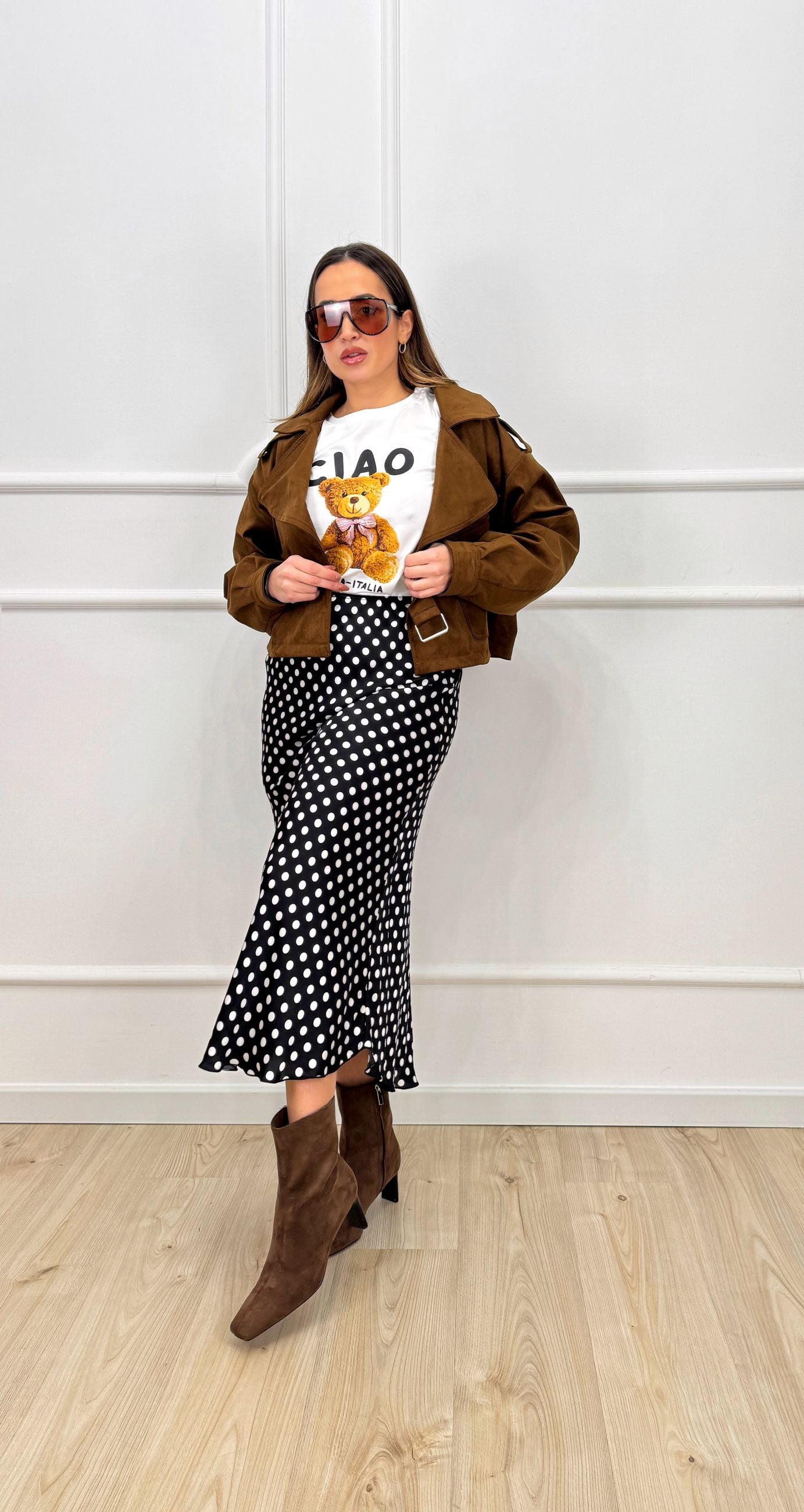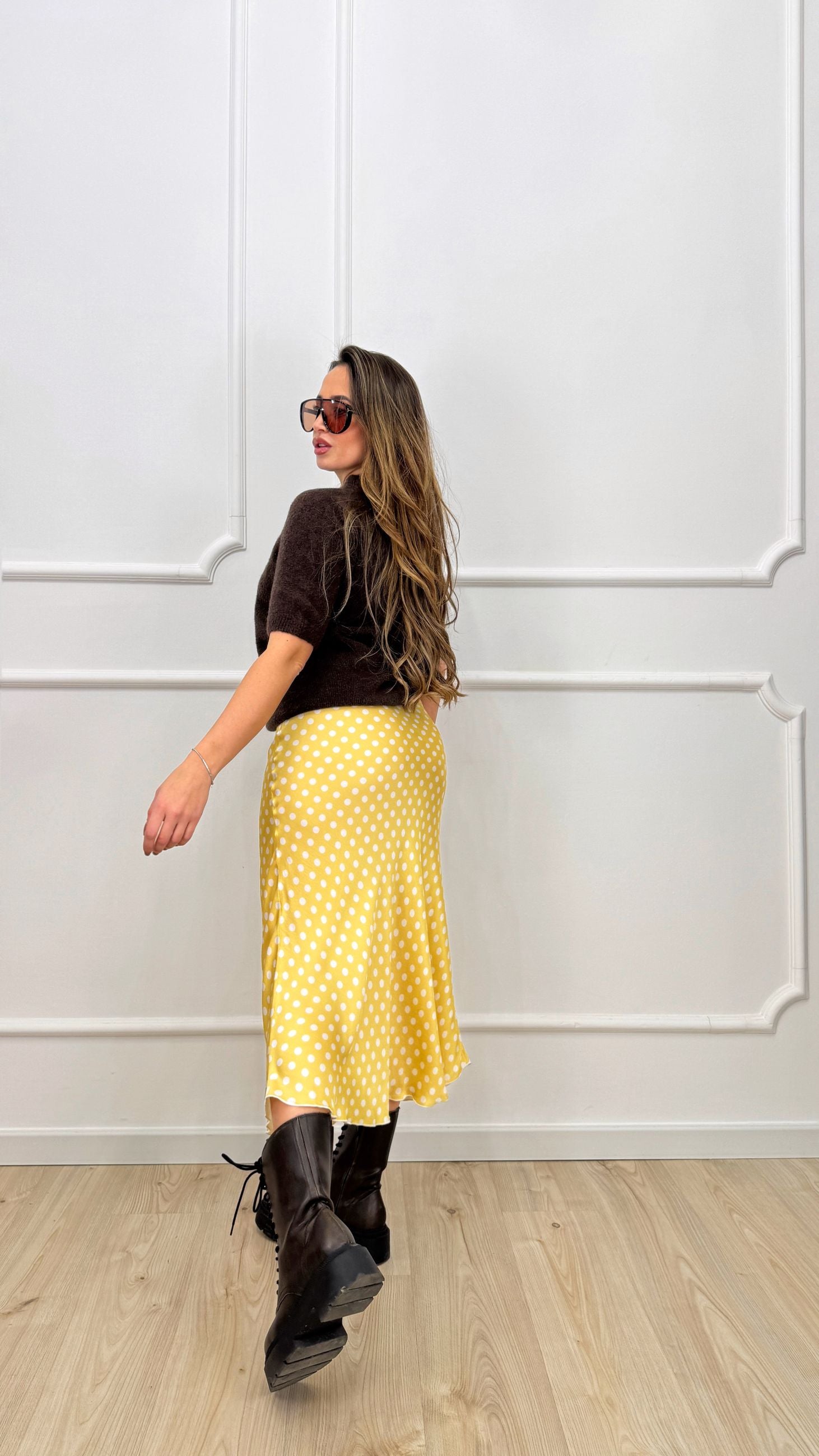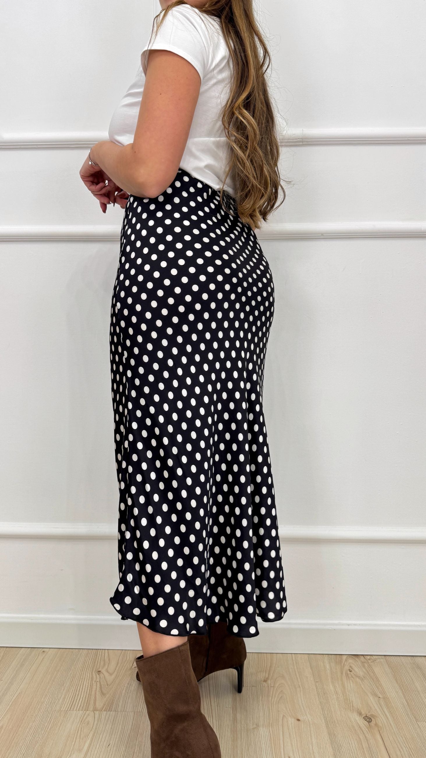 Gonna in satin a pois