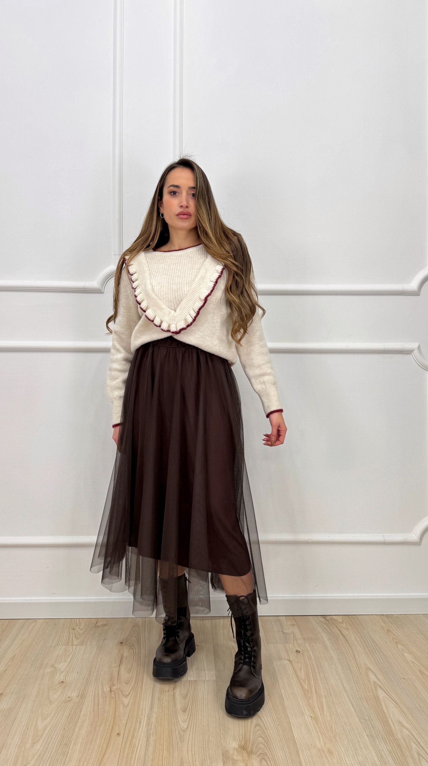 Maglioncino con rouge panna e bordeaux