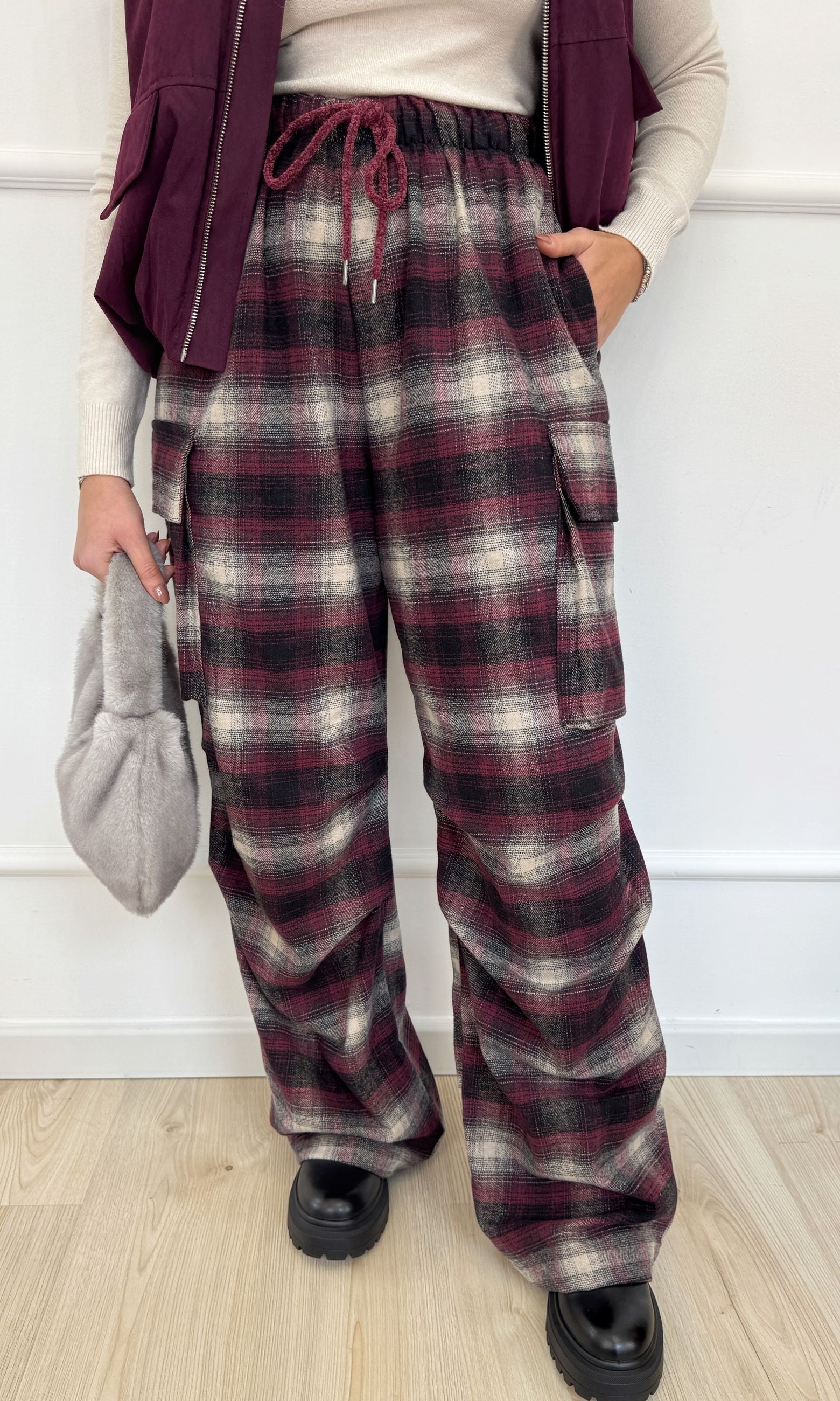 Pantalone a quadri Lumina Bordeaux
