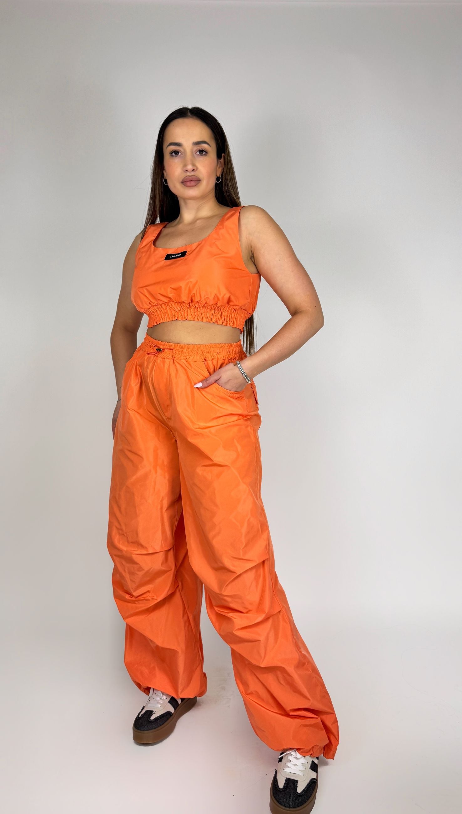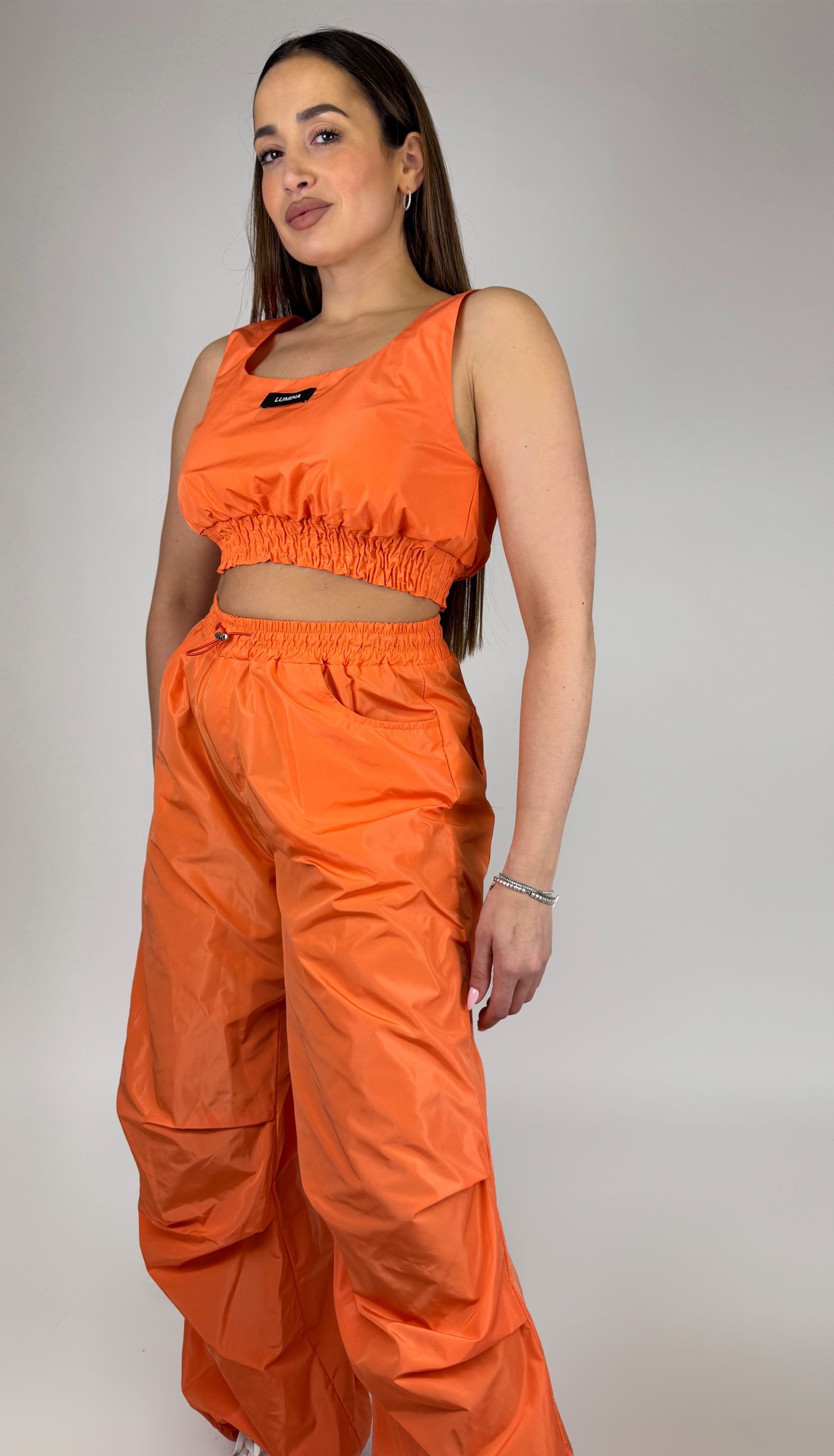 Top cropped con scollo quadrato, spalline larghe.