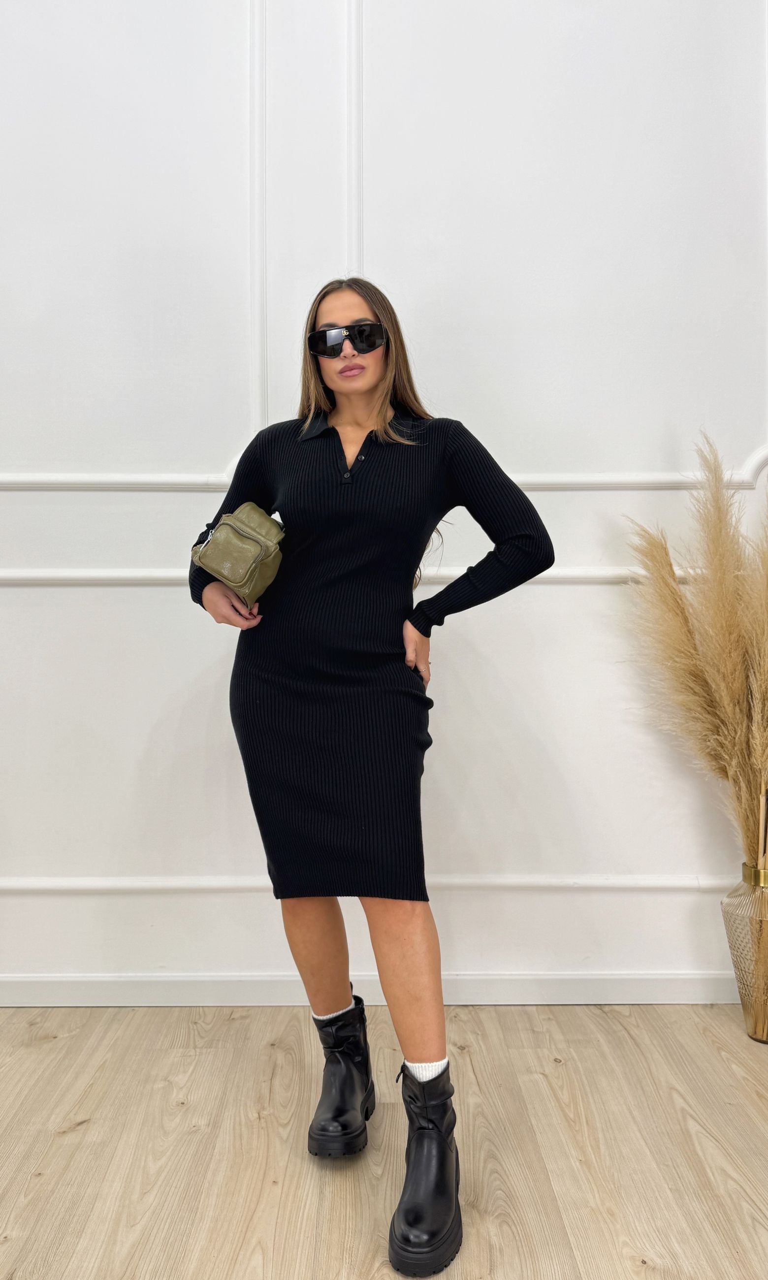 Vestitino in maglina a costine aderente. collo modello polo con bottoncini.