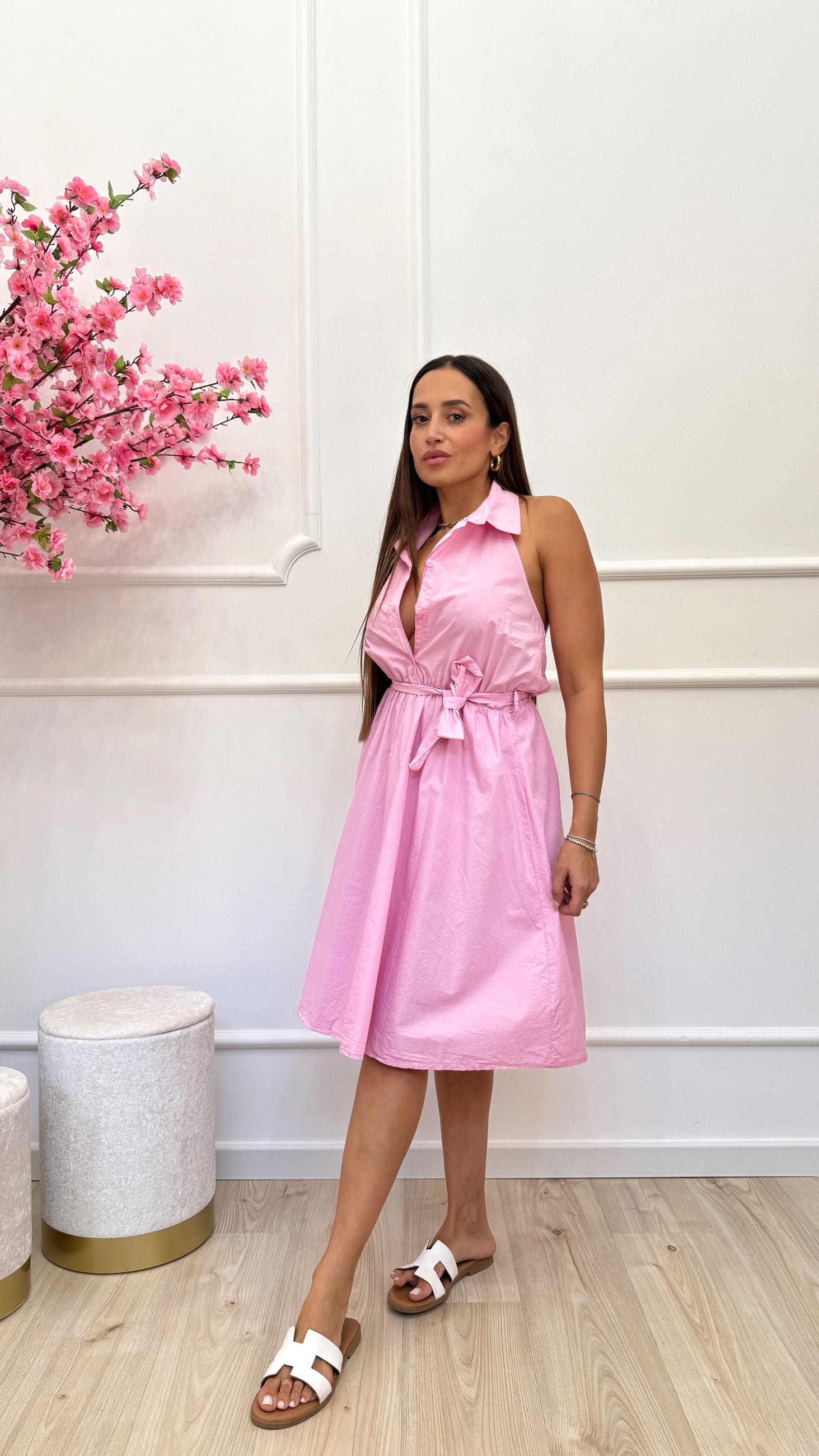 Vestito cotone collo camicia